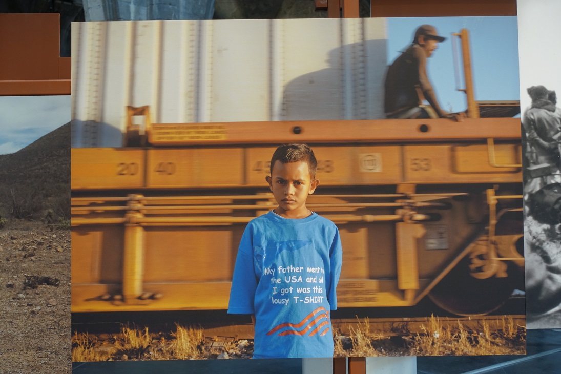 Partout des maillots de foot, sur les images et en vrai sur les murs. Une énième expo sur le sport, Jeux Olympiques obligent ? Non, un tacle, un uppercut, grâce à quelques phrases bien choisies. Messi ramasse les ordures. Ronaldo fait la guerre. Zidane n’arrive plus à nourrir sa famille. Et quelles que soient ses tâches, Diego Costa, elle, porte son bébé sur son dos.