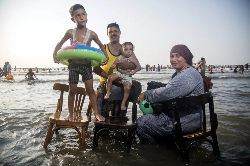 Photojournaliste et documentariste égyptien, Roger Anis donne aux sujets sociaux une place privilégiée dans son travail. Dans cette série, il nous relate l'importance des plages publiques dans le mode de vie et la culture populaires. Plaisir de marcher dans le sable, de sentir l'eau salée sur sa peau, de profiter du soleil... Ses portraits, souvent de groupe ou de famille sont remarquablement construits et en émane une sérénité loin des tracas quotidiens. La petite touche d'éclairage ajoutée face aux sujets, rappelant sous d'autres latitudes un certain Martin Parr, confère à ces images un petit côté studio qui renforce leur atmosphère chaleureuse.
