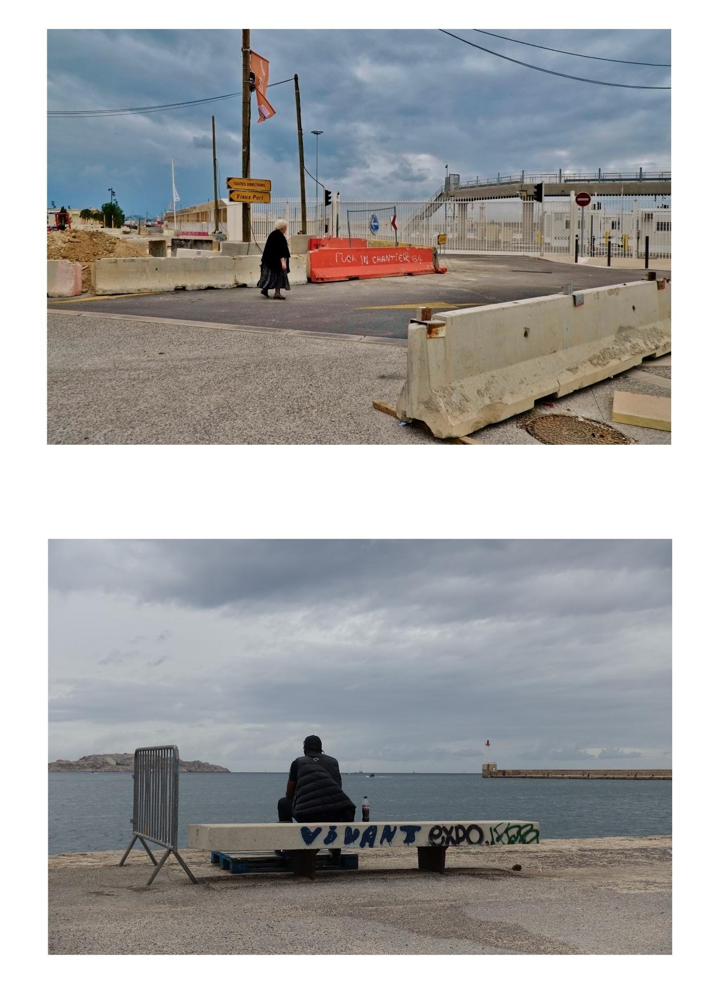 Et voilà Marseille. Avec le bleu du ciel mais aussi la pluie, la brume ou le clair-obscur. La culture foot mais pas comme on l'imagine. Un abribus qui devient kiosque de musique lorsque La voie est libre. La mer qui s'invente de nouveaux horizons. Des gabians mais aussi des fauves de pacotille et un chat aux yeux fluo en vigie au-dessus de la ville. Des bâtisses millénaires mais d'autres qui s'écroulent. Des amitiés, des solitudes mais aussi l'émotion qui rassemble…